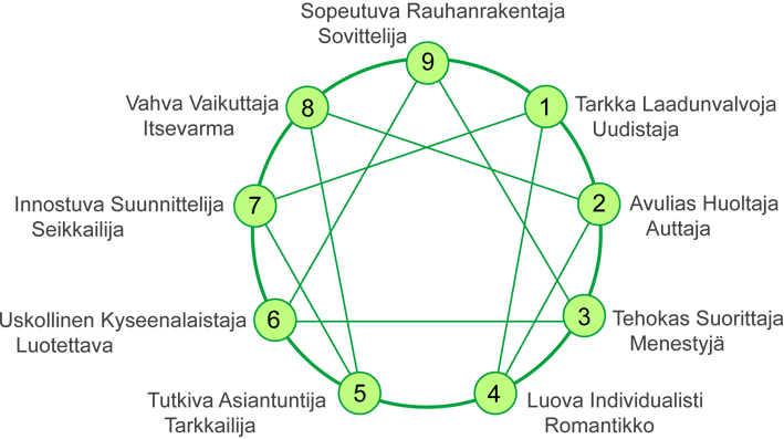 Enneagrammi on persoonallisuusmalli, joka kuvaa yhdeksän erilaisen persoonallisuustyypin toimintatapoja ja toiminnan taustoja laajasti ja syvällisesti.